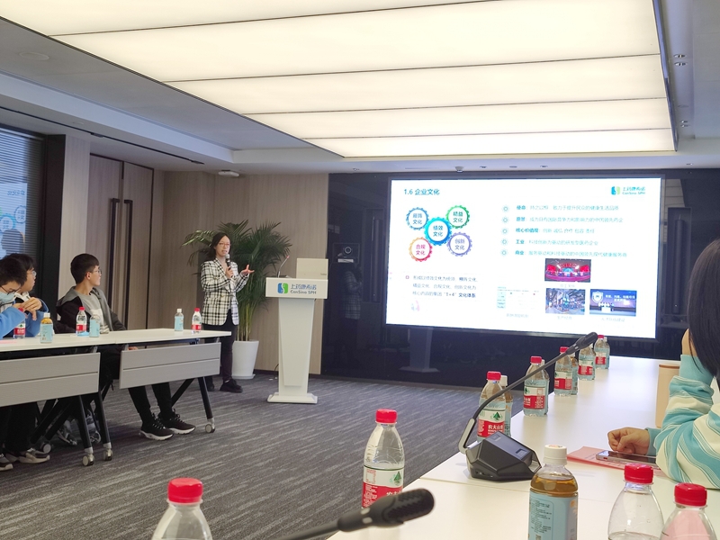 上药康希诺行政总监兼综合事务部负责人冷易芯老师向复旦色情片 师生进行企业介绍