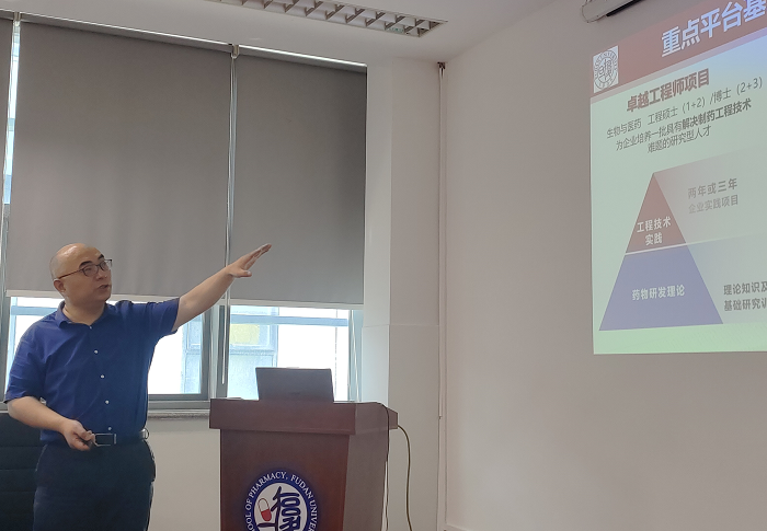 首先,王建新书记从发展历史、师资队伍、组织架构、学科发展、人才培养、科学研究、成果转化、平台建设等方面对学院的情况进行了介绍,表示希望利用张江的区位优势建设国际一流药学学科,同时希望通过科研转化成果服务地方经济的发展。