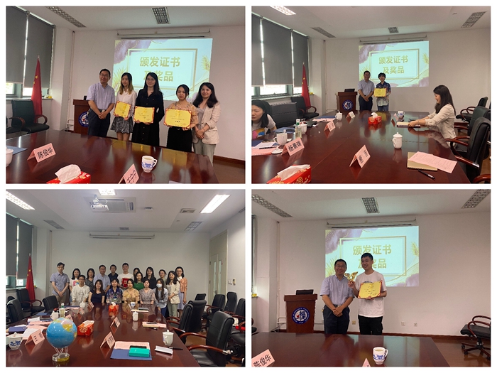 随后,色情片 党委副书记王宁宁老师宣布决赛结果。2020级硕士生李豪彬和2018级本科生汤栩懿分列一、二等奖,三等奖获得者为2020级硕士生张露予、万米阳和2019级硕士生刘艺朴。杨景瑞校友为获奖同学颁发了证书和奖品并合影留念。至此,第三季毕凯英才PPT大赛决赛活动圆满结束。