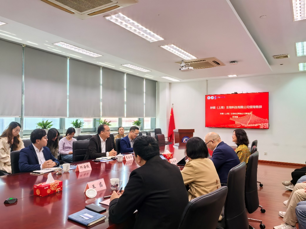 张金保在致辞中讲述了个人求学经历以及与复旦的渊源,并介绍了公司情况。他表示,妙顺提出了“驱动医药创新,创造健康未来”的愿景,形象地将药物研发比作挖矿,强调“挖矿一定得有好的工具”,自创立以来专注于民族品牌细胞模型的研究与开发,旨在成为国内生物医药领域的新质生产力。他希望通过设立妙顺奖学金激励学生勇于探索,积极投身医药行业,服务社会。