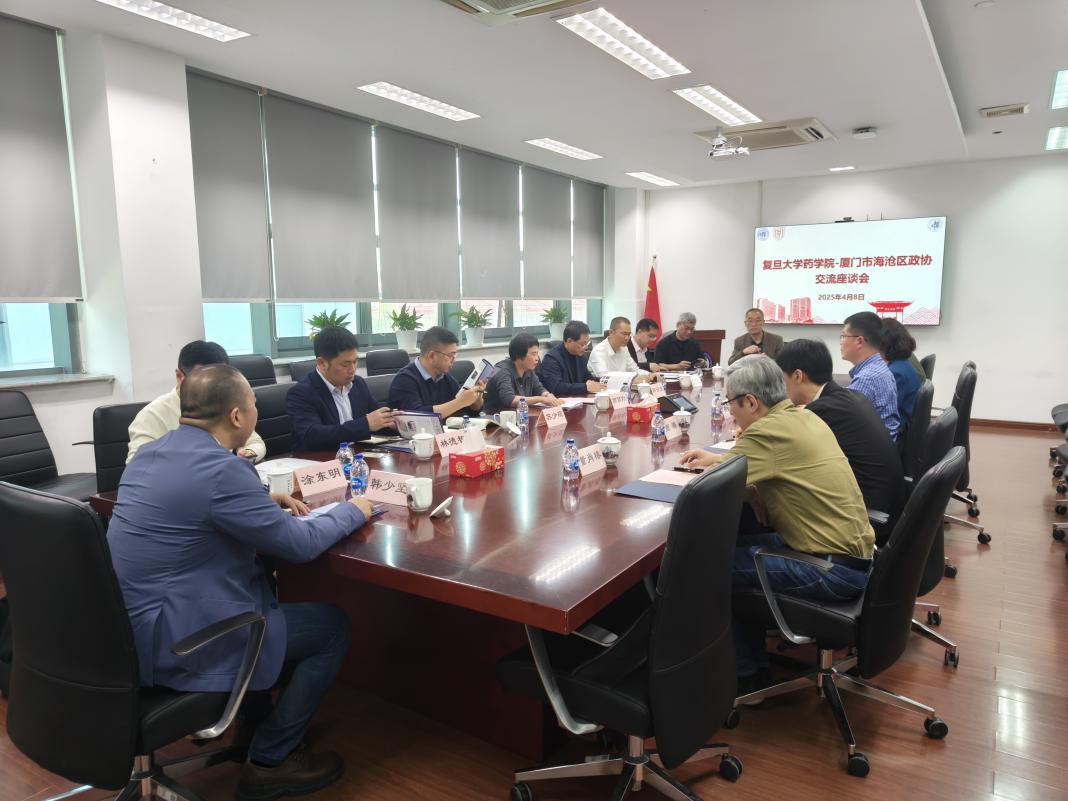 颜丽珍首先介绍此行来访的目的,并详细讲解了海沧区的区位优势、产业布局及生物医药产业发展现状。李聪从学科建设、科研创新、人才培养等方面介绍学院的基本情况,并重点阐述了学院在推进科研成果转化方面的一些举措。