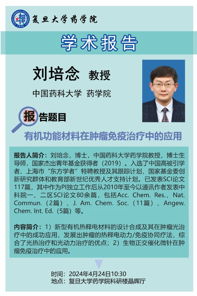 4月24日学术报告-有机功能材料在肿瘤免疫治疗中的应用