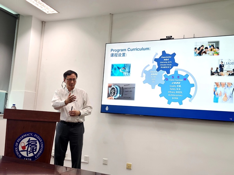 副院长戚建平、天然药物学系主任陈道峰、临床药学与药事管理学系主任相小强等师生代表约40人参加了此次学术交流活动。