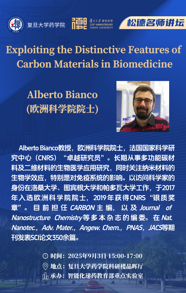 9月3日松德名师讲坛 - Exploiting the Distinctive Features ofCarbon Materials in Biomedicine