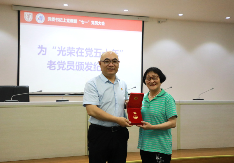 初心不改,永葆本色。在“光荣在党五十年”纪念章颁发仪式上,党委书记王建新为在党五十年的优秀老党员张敖珍同志颁发纪念章,向她表示热烈的祝贺和崇高的敬意。接着,张老师回忆了她在知青下乡年代入党的初心,并表示作为一名党员,思想上永远不能退休,要积极传播弘扬正能量,为建设中国特色社会主义国家尽自己的一份力量。