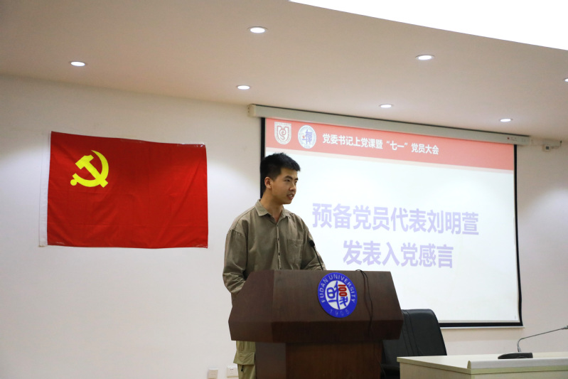 随后,学生预备党员代表刘明萱围绕坚守初心、明法守纪和守正创新三点发表入党感言,认为要坚守为人民服务的初心,时刻遵守党规党纪,严守纪律红线,努力提升专业知识,为建设科技强国努力。