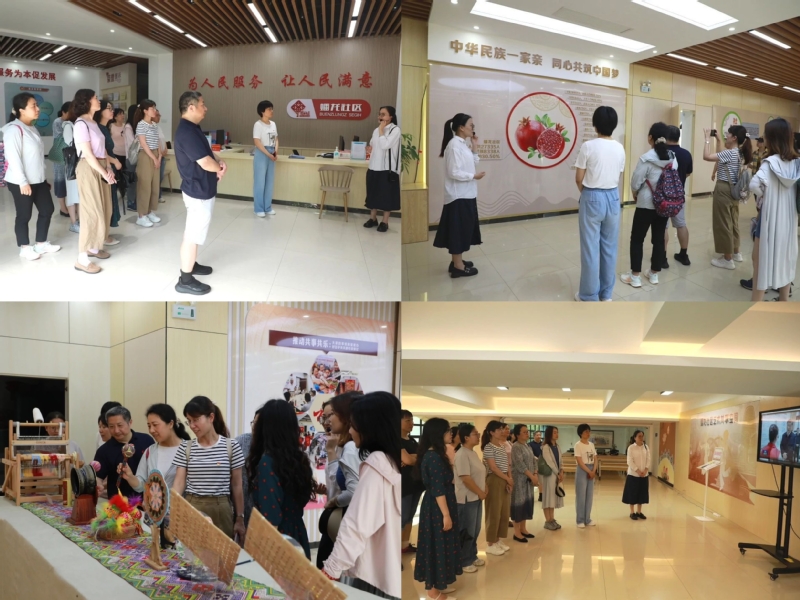 2023年12月,习近平总书记视察广西时曾来到南宁市良庆区蟠龙社区党群服务中心考察调研。该社区结合多民族“嵌入式”居住和企业众多的特点,创新工作机制,促进各族群众广泛交往、交流、交融,像石榴籽一样紧紧抱在一起,画好民族团结进步的“同心圆”。实践团紧跟习近平总书记脚步,来到蟠龙社区党群服务中心参观学习。工作人员详细介绍了社区概况、民族团结工作理念及网格化管理模式,并展示了“老友帮帮团”“邻里议事会”“社企联盟”等创新工作做法。在党群服务中心活动室,实地参观形式多样的惠民活动,老师们更加深刻感受到了党建引领基层社会治理和民族团结工作所取得的显著成效,也在交流互动的过程中共同探讨着基层党支部建设的经验和想法。
