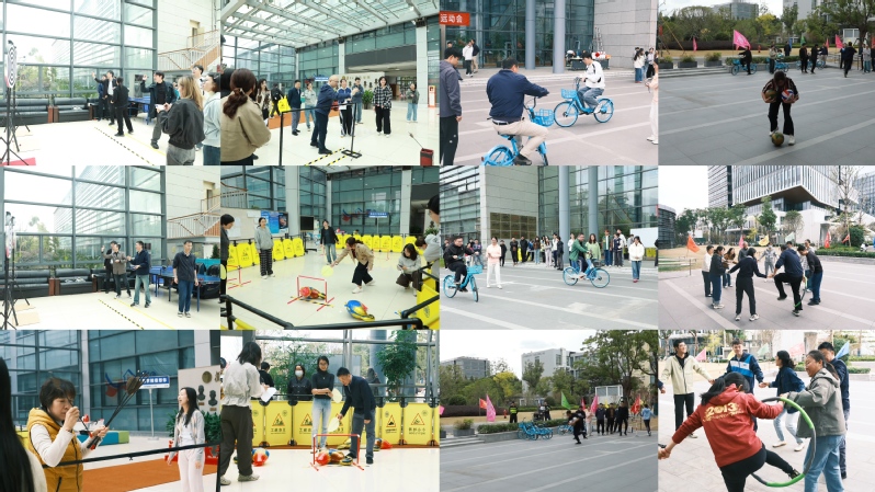飞镖比赛中,选手们凝神聚力、精准投掷,每一次命中靶心都能赢得观众们“好!”“太准了!”的欢呼;投壶现场,大家屏气凝神,羽箭入壶的瞬间,周边观赛者的掌声与赞叹声此起彼伏;赶鸡入笼项目里,队员们手持道具小心翼翼引导“小鸡”前进,偶尔的失误引得全场哄堂大笑;自行车慢骑赛道上,选手们稳扎稳打,哪怕细微的晃动都牵动着观众的心,大家屏息注视,不时为选手们的稳定发挥鼓掌叫好;一圈到底和抱球接力项目中,各队队员齐心协力、奋勇争先,老师们的默契配合与快速冲刺让现场气氛持续升温。