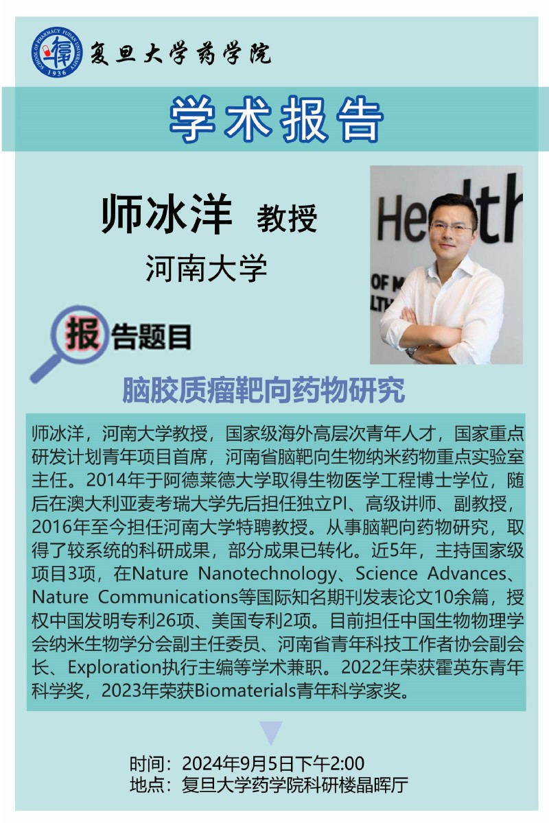 9月5日学术报告:脑胶质瘤靶向药物研究