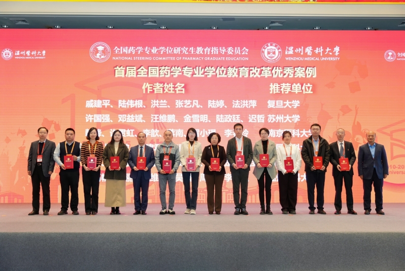 2025年11月20日,由全国药学专业学位研究生教育指导委员会主办、温州医科大学承办的“2025年全国药学专业学位研究生教育年会暨药学专业学位教育设立十五周年纪念大会”在温州召开。会议举行了第八届全国药学专业学位优秀教学案例和首届全国药学专业学位教育改革优秀案例颁奖仪式。色情片 荣获优秀教学案例、教育改革优秀案例各一项。