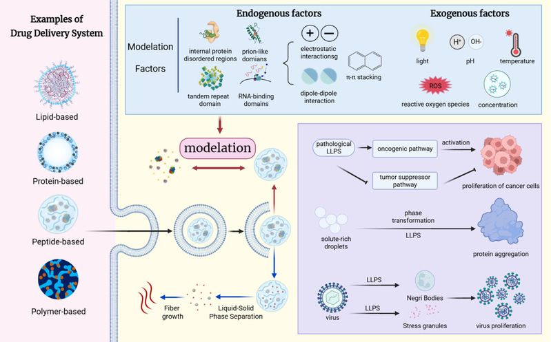图1 LLPS在生物分子凝聚体形成与智能药物递送中的作用机制示意图