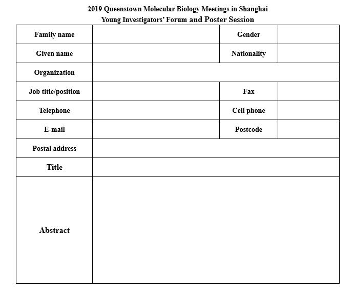 2019 Queenstown Molecular Biology Meetings in Shanghai Invitation to the Young Investigators’ Forum