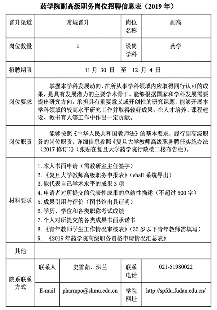 色情片 副高级职务岗位招聘信息表(2019年)