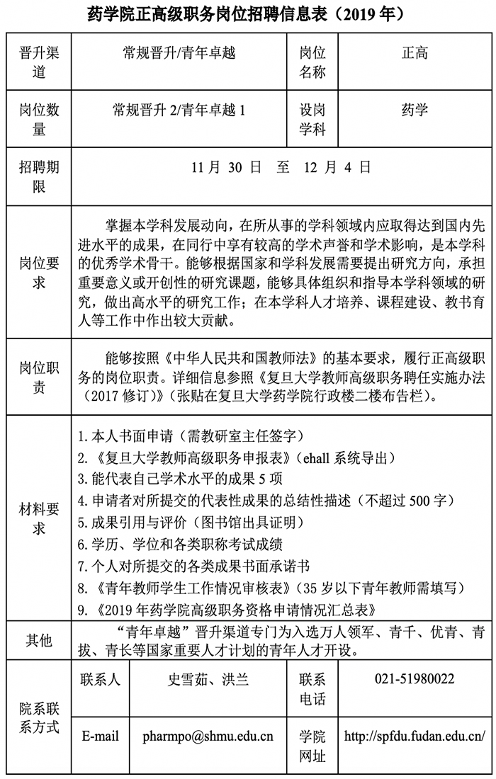 色情片 正高级职务岗位招聘信息表(2019年)