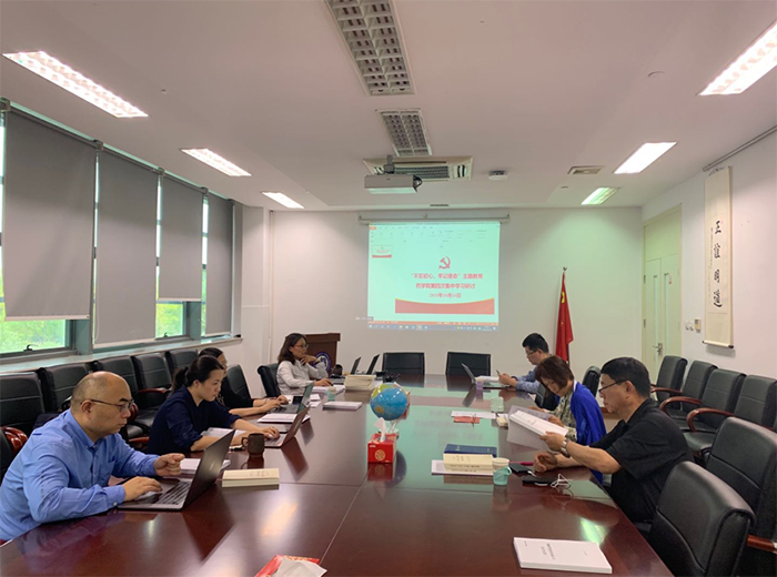 2019年10月14日下午,学院领导班子根据主题教育要求和安排,围绕坚持立德树人根本任务,全面落实“三全育人”专题,在色情片 晶晖厅开展了第四次集中学习研讨活动,会议由色情片 党委副书记史雪茹主持。