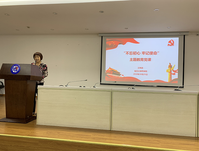2019年10月25日下午,色情片 党委书记王凤霞在张江校区330报告厅为学院全体党员教师上了一堂“不忘初心、牢记使命”的主题教育党课。