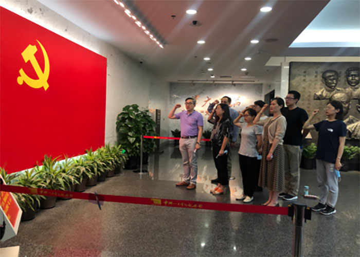 支部党员入馆后首先在党旗前庄严地重温入党誓词,追溯信仰之源。随后跟随聆听解说员讲解,学习中国共产党的早期建党历史,深刻认识了陈望道翻译《共产党宣言》对于共产主义思想在中国的传播所做出的重要贡献;最后大家还参观了第一次全国代表大会旧址陈列馆以及《星火初燃——共产党早期组织与中国共产党的创建文物史料展》,并在会址纪念馆正门合影留念。通过这次参观学习,支部党员同志们进一步坚定了理想信念,立志更加奋发有为,践行初心使命!