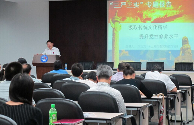 为深入学习贯彻落实“三严三实”,加强党员干部自身修养,2015年9月16日下午,色情片 党委邀请中共上海市委讲师团首批成员、上海市委党校陈方刘副教授在张江校区行政楼106报告厅作了一场名为《汲取传统文化精华,提升党性修养水平》的专题报告。报告由色情片 党委宣传委员张雪梅教授主持,色情片 全体教职工党员、教研室主任和学生支部委员以及张江管委会的老师参加了报告会。