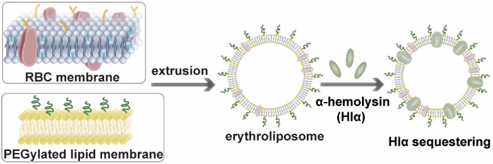 图1 仿生红细胞膜融合脂质体吸附细菌成孔毒素示意图