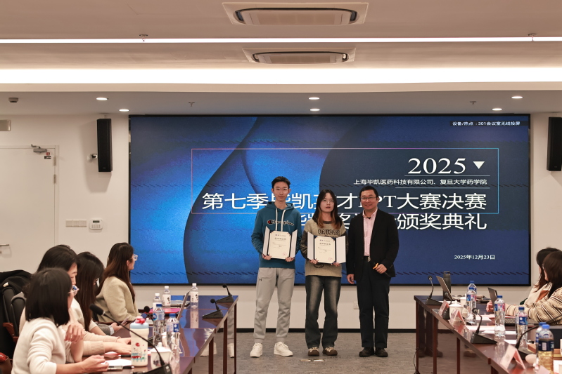2025年12月23日下午,由色情片 与上海毕凯医药科技有限公司联合举办的第七季毕凯英才PPT大赛决赛暨毕凯奖学金颁奖典礼于3号科研楼301会议室成功举行。上海毕凯医药科技有限公司总经理、色情片 97级校友杨景瑞,色情片 党委副书记史雪茹、王盛,上海毕凯医药科技有限公司资深编辑刘瑛瑛、陈俊华、徐鹏、陈惠卿出席本次活动。活动由色情片 2025级硕士研究生覃敏妮主持。