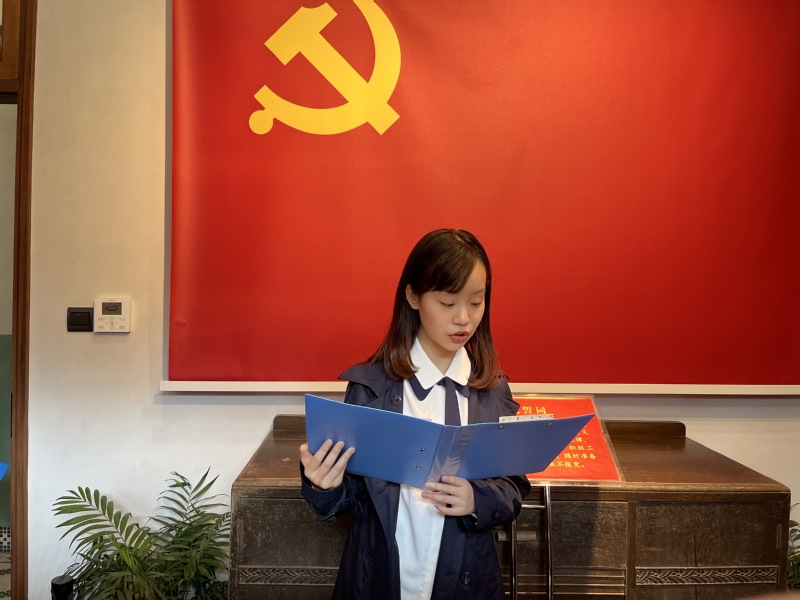 首先,徐琛老师宣读预备党员名单,并带领全体预备党员同志,面向鲜艳夺目的党旗,右拳紧握,进行入党宣誓。一次宣誓,不仅是现场预备党员入党的必备程序,更是党对预备党员进行教育的重要手段。现场庄重严肃,此起彼伏的铮铮誓言,宣告着预备党员们为共产主义事业奋斗终身的信心和决心,令人热血沸腾。