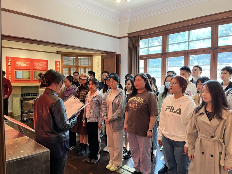 最后,预备党员同志们在“星火”党员志愿服务队副队长、色情片 2022级硕士生董美辰的带领下参观陈望道旧居,共同探索《共产党宣言》的故事,寻求信仰的源泉、真理的力量。