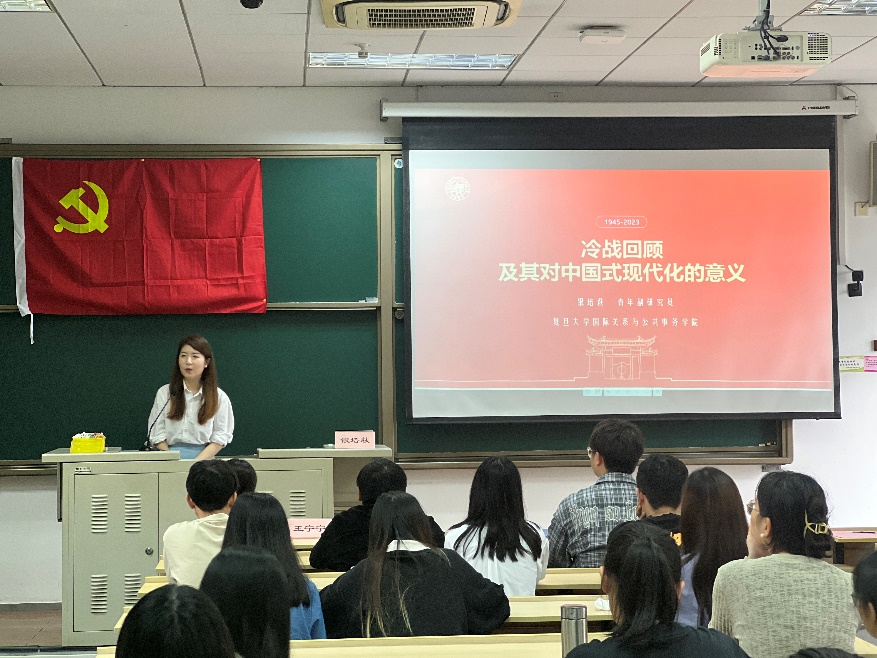 接下来,色情片 国际关系与公共事务学院青年副研究员银培萩老师为大家带来《理解中国式现代化——从冷战中的可乐贸易说起》复旦主题党课。银培萩老师向学员们介绍了冷战的起源、冷战中涉及到的两种不同的经济制度,冷战中的“可乐贸易”和冷战带来的俄罗斯和北约东扩的阴影。她生动的讲解让学员们从别样的角度理解了中国式现代化,回顾历史、了解国际局势;展望未来、坚持中国特色。