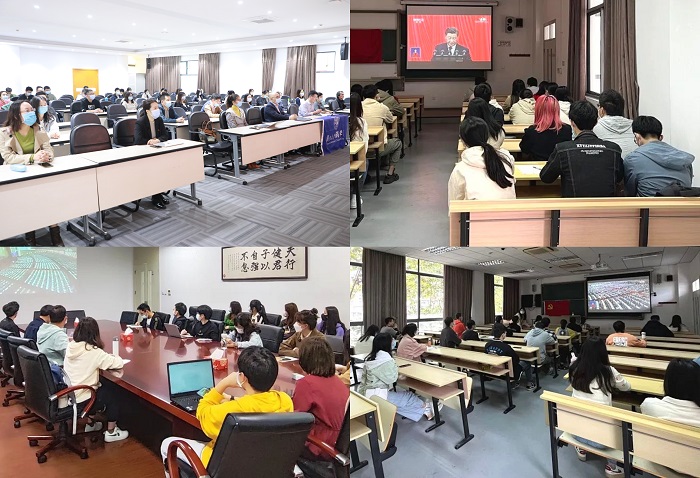 10月16日上午,中国共产党第二十次全国代表大会在北京隆重开幕。这次大会是在迈上全面建设社会主义现代化国家新征程、向着第二个百年奋斗目标进军的关键时刻召开的一次十分重要的大会,是全国人民政治生活中的一件大事。结合疫情防控要求,色情片 组织约60名师生党员、入党积极分子代表,在张江校区分会场集体收看大会盛况,认真学习习近平总书记在庆祝大会上的重要讲话精神。学院党政领导班子成员参加了现场活动。各师生党支部通过电视、网络、广播、手机直播等多种形式,认真收听收看了大会直播,共371名党员、发展对象、入党积极分子收看了直播,反响热烈。