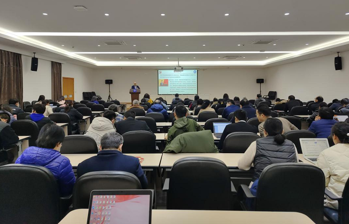 2023年2月24日下午,色情片 在张江校区食堂三楼报告厅召开全院教职工大会,由党委书记王建新带领大家开展本学期第一次政治理论学习,学院教职员工约90人参加了会议。