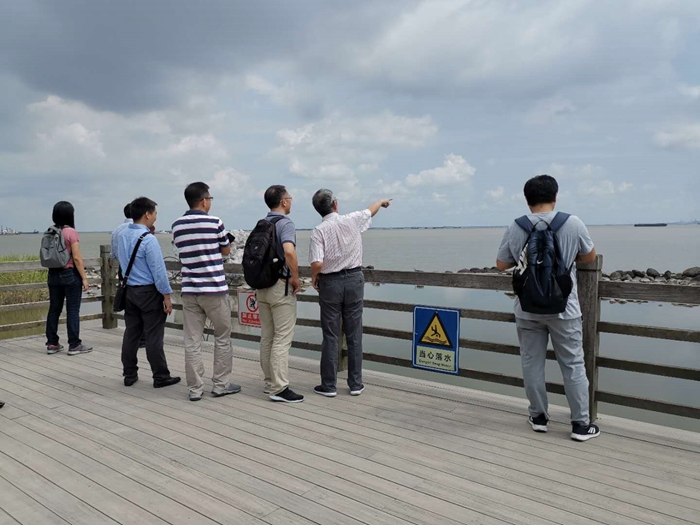 最后,党员们来到江边,远眺上海吴淞口国际邮轮港,实地感受了上海航运业的巨大发展成就。