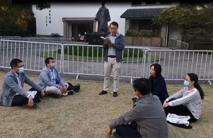 为了进一步加深对鲁迅精神的理解,支部在鲁迅纪念馆前组织了一次微型读书会。陈键老师朗读了鲁迅先生的《一件小事》。鲁迅先生用凝练的笔触将劳动人民沾满灰尘的高大身影镌刻在了党员们的灵魂深处。戚建平老师朗读了鲁迅先生的《故乡》,党员们再一次被先生对故乡深刻含蓄的爱和对人民困苦生活的同情所感染。