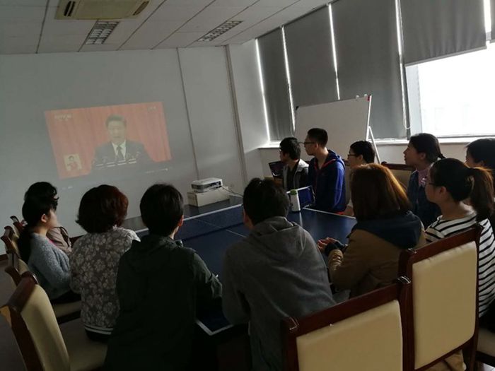 2017年10月18日上午,举世瞩目的中国共产党第十九次全国代表大会在北京人民大会堂隆重开幕。色情片 党委组织党政班子成员、支部书记、科室主任、学生党总支委员及学生党员骨干等在张江校区行政楼106报告厅集中收看“十九大”开幕盛况。全院15个党支部(包括教工、学生和退休党支部)通过电视、网络等媒体集体观看了现场直播。