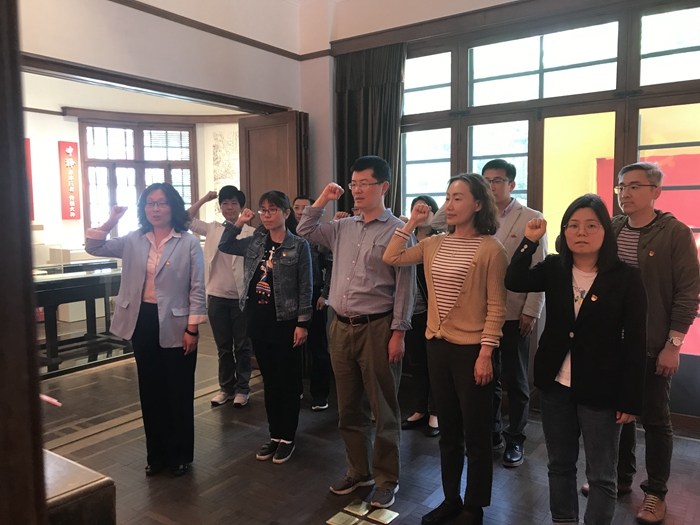 启动仪式开始后,在志愿者的讲解和引导下,大家依次参观展示馆的每一个展厅,通过观看珍贵的书籍、史料和影视资料,感受陈望道先生坚定不移的信仰追求和笃志专注的治学之道。参观最后,大家在史雪茹副书记的带领下,集体重温入党誓词,不忘初心,牢记使命。