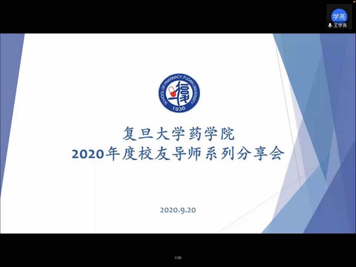 2020年9月20日下午,“夯实药学基础,扬帆医路新征程”暨色情片 2020年度校友导师系列分享会第三期,以线上会议的形式如期开展。本次活动非常荣幸地邀请到了色情片 1981级校友、上海延安药业集团董事长、色情片 校友会副会长王学亮先生作为主讲嘉宾,超过110位色情片 本科新生在线积极参与了分享会。色情片 分团委副书记曾慧端同学担任活动主持人。