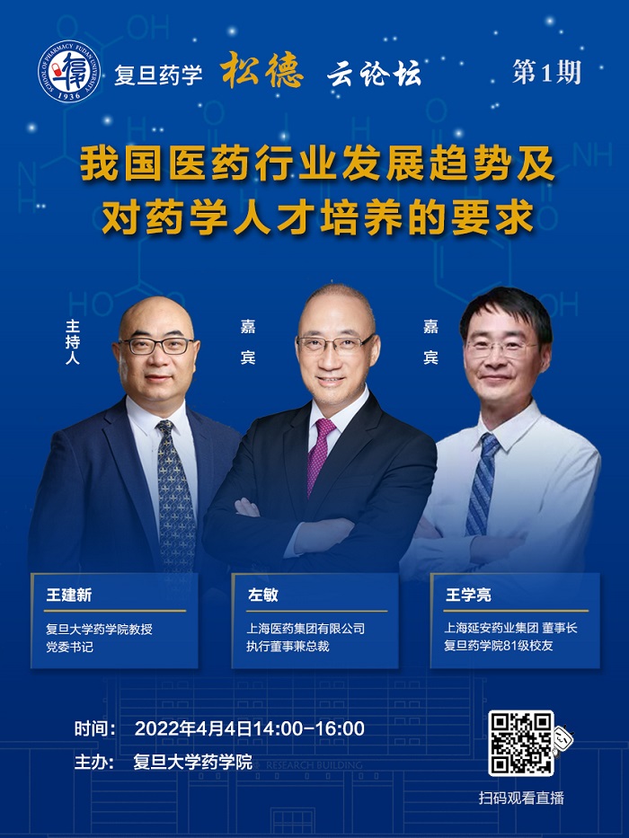 为帮助药院学子更好地了解生物医药领域的发展趋势以及对医药专业人才的需求,丰富校园准封闭管理期间同学们的课余生活,现将举办复旦药学“松德·云论坛”在线系列讲座,每次邀请2-3位药学领域科学家、企业家、杰出校友开展对话,搭建分享交流平台,帮助同学了解行业背景,拓展专业知识,开阔人生视野,共享思想盛宴。