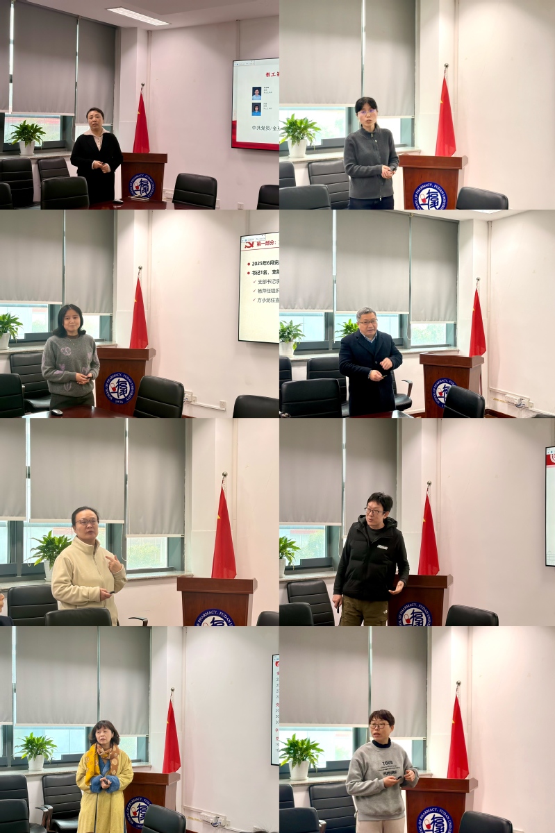 王建新代表学院党委对各支部2025年度基层党建工作给予了充分肯定。针对下一年度工作,他提出四点要求:一是持续强化理论武装,将学习宣传贯彻党的二十届四中全会精神作为首要政治任务;二是深化党建业务融合,以支部共建为纽带,拓展院外优质资源,推动党建与科学研究、人才培养、成果转化等工作同频共振;三是筑牢品牌建设矩阵,在现有基础上持续深耕“一支部一品牌”,打造具有药学特色的党建品牌集群;四是凝聚队伍发展合力,以90周年院庆为契机,创新支部活动形式,主动吸纳非党员教师参与,增强支部的凝聚力和向心力。