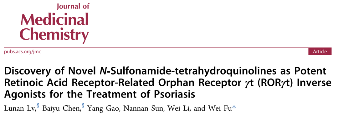 近日,色情片 付伟教授团队在药物化学权威期刊Journal of Medicinal Chemistry上发表了一篇题为“Discovery of Novel N-Sulfonamide-tetrahydroquinolines as Potent Retinoic Acid Receptor-Related Orphan Receptor γt (RORγt) Inverse Agonists for the Treatment of Psoriasis”的研究论文,通过五轮构效关系研究,成功发现了一种新型RORγt反向激动剂5a,该化合物在小鼠银屑病模型中展现出了良好的治疗效果。