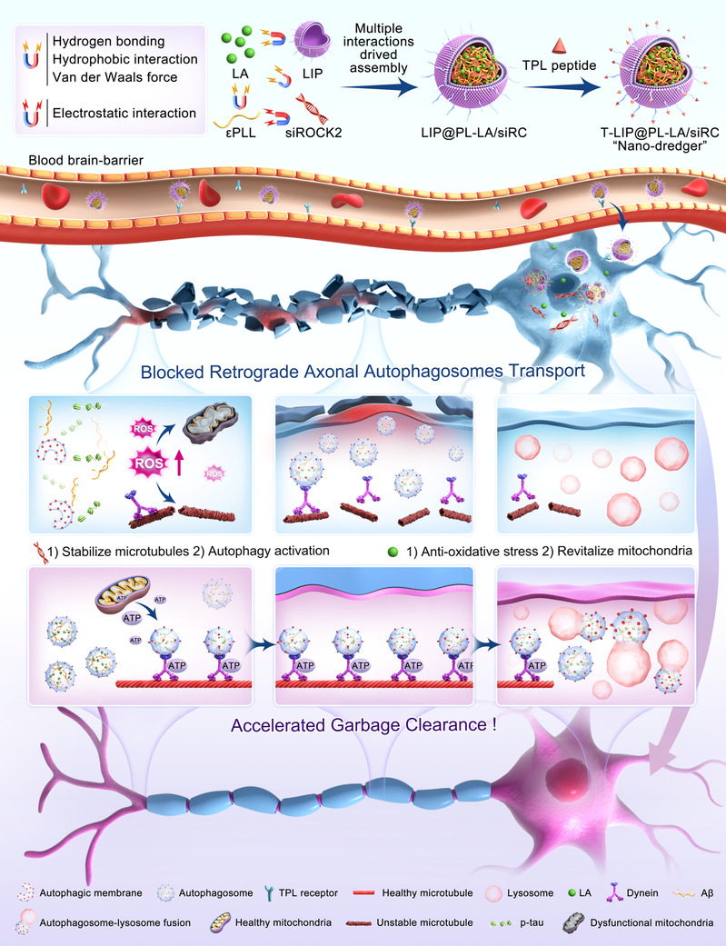 该研究以“Polyphenol Mediated Assembly: Tailored Nano-dredger Unblocks Axonal Autophagosomes Retrograde Transport Traffic Jam for Accelerated Alzheimer's Waste Clearance”为题在线发表于权威期刊Advanced Materials。