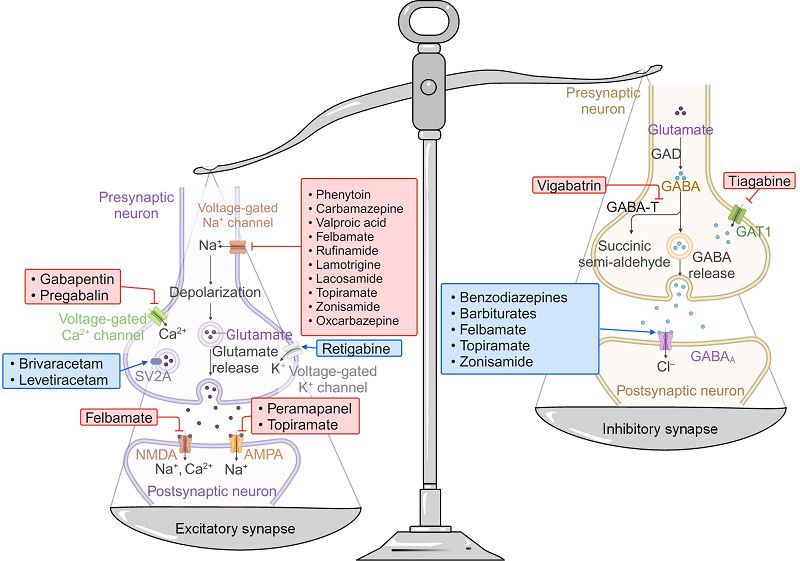 图2. 临床使用的抗癫痫药物及其作用机制