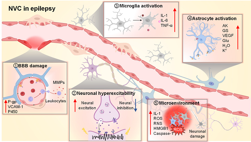 图3. NVC稳态受损可促进癫痫发生发展,并为治疗干预提供靶标