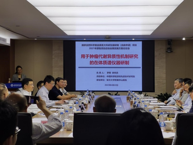 会上,罗茜研究员、李聪教授分别以 “用于肿瘤代谢异质性机制研究的在体质谱仪器研制”、“用于实体瘤侵袭多分子事件研究的智能拉曼检测仪器研制”为题进行了详细的项目汇报。与会专家就报告内容和项目实施方案进行研讨,充分肯定了研制仪器的重大意义和应用价值,对已开展工作给予了高度评价,同时对仪器项目设计中存在的问题进行了讨论与质询,并对项目研究过程应注意的问题提出了宝贵意见,希望未来能有更详尽的设计,确保仪器项目顺利开展,并应用于实际,为探索科技前沿、服务国家需求夯实技术基础。两位项目负责人对专家组的悉心论证表示感谢,并表示将充分吸纳专家组提出的意见建议,充分完善项目设计,突出特色创新,融入应用价值。