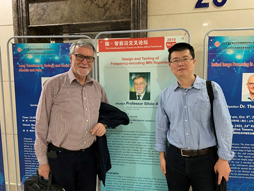2019年10月16-18日,应色情片 李聪教授与类脑智能科学与技术研究院张孝勇博士邀请,欧洲分子影像学会前任主席、意大利都灵大学副校长Silvio Aime访问色情片 ,并向师生作了题为《频率编码磁共振探针研究进展》的学术报告。