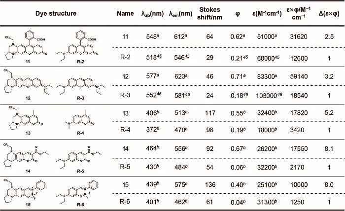 表1. 拓展染料与对应参比染料的荧光性质对比