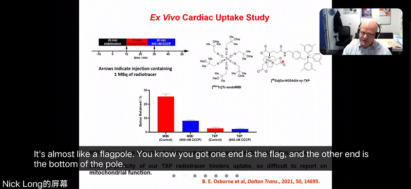 接着,中欧专家依次介绍研究成果。英国帝国理工大学Nicholas James Long教授做了题为“Mitochondria Imaging with PET-labelled Lipophilic Cations”的报告,介绍利用放射性核素标记的亲脂阳离子化合物进行线粒体成像的研究。利用PET成像技术,Long展示了这些专门的探针如何能够帮助追踪活细胞内线粒体的运动和功能。这项研究对各种疾病的诊断和治疗具有重要意义。