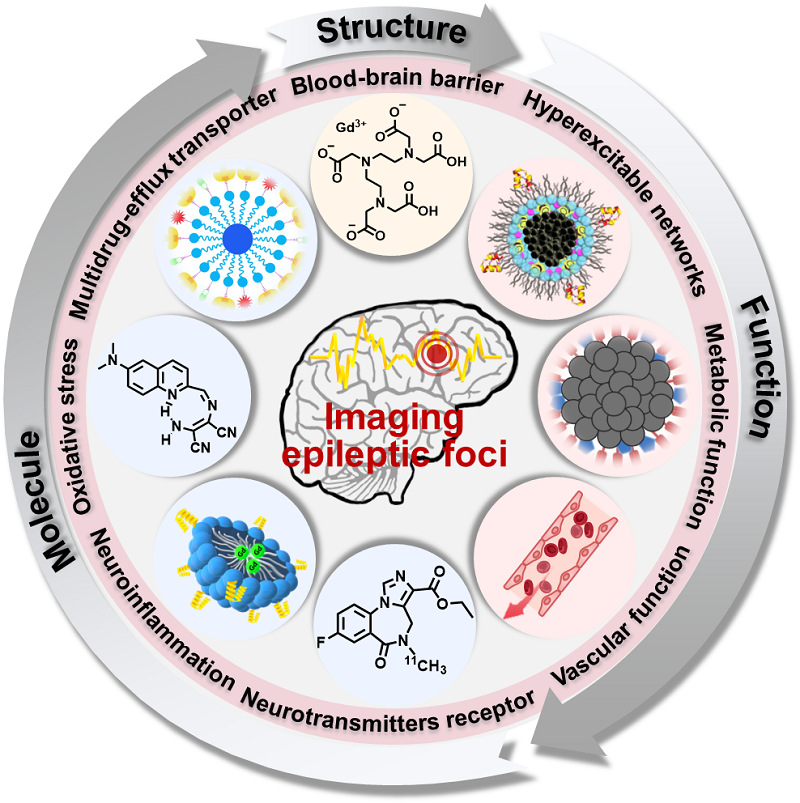 Abstract: Excising epileptic foci (EF) is the most efficient approach for treating drug-resistant epilepsy (DRE). However, owing to the vast heterogeneity of epilepsies, EF in one-third of patients cannot be accurately located, even after exhausting all current diagnostic strategies. Therefore, identifying biomarkers that truly represent the status of epilepsy and fabricating probes with high targeting specificity are prerequisites for identifying the “concealed” EF. However, no systematic summary of this topic has been published. In this paper, we first summarize the potential biomarkers of EF and classify them into three categories: functional, molecular, and structural aberrances during epileptogenesis, a procedure of non-epileptic brain biasing toward epileptic tissue. The materials used to fabricate these imaging probes and their performance in defining the EF in preclinical and clinical studies are highlighted. Finally, the perspectives for developing the next generation of probes and their challenges in clinical translation are discussed. In general, this review will be helpful in guiding the development of imaging probes defining EF with improved accuracy and holds promise for increasing the number of DRE patients who are eligible for surgical intervention.