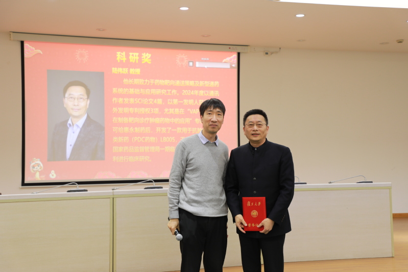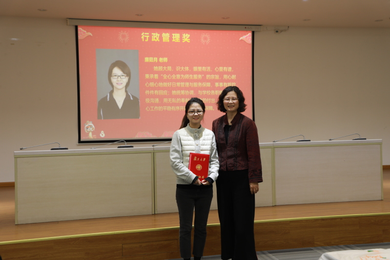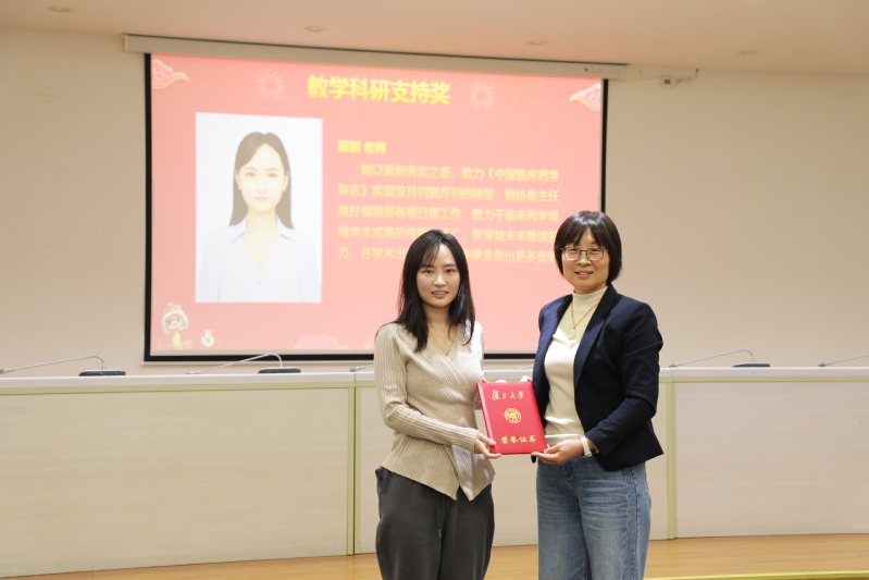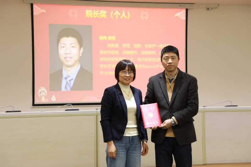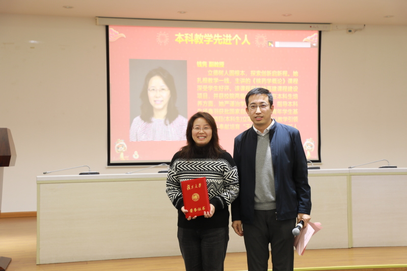 大会还对在师德师风、教学、科研、管理、党员作用发挥等方面表现优异的个人和集体予以表彰。学院领导分别为本科教学先进个人钱隽、研究生教学先进个人蒋晨、继续教育先进个人相小强、科研奖获得者陆伟跃、科研新星奖获得者孙涛、行政管理奖获得者廉茹月、学生工作支持奖获得者何庆烽、教学科研支持奖获得者蔡靓、师德师风先进个人姜琳琳、优秀教工党员洪兰、院长奖(个人)获得者董肖椿、陆伟,院长奖(集体)获得者药学实验教学中心颁奖。此外,还为孙涛、沙先谊、黄容琴、蒋晨、付伟、楚勇、董肖椿、卢燕、穆青、沈晓燕、辛宏、曾湖烈、章旭耀、史训龙、何庆烽、钱隽、周祝、廖雪玲、姜琳琳、王洁、常英、刘黎馨、李佩珈、刘秀杰、王婷婷等年度考核优秀的老师颁发荣誉证书,表彰他们在各自岗位的卓越表现。