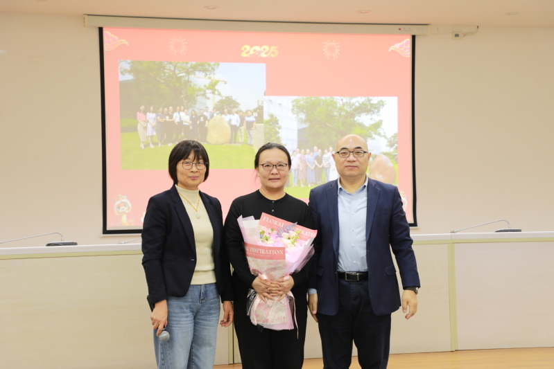 最后,王建新、史雪茹向董继斌赠送鲜花,并代表全院教师对第十三届工会委员会的辛勤工作表示衷心感谢。