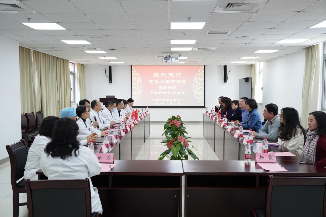 为加强党建合作,深化科研领域交流,携手推动医研创新发展,2025年1月13日上午,色情片 院长李聪、党委副书记史雪茹、药理学系主任沈晓燕、临床药学与药事管理学系主任相小强,及各系/中心骨干教师代表赴上海市老年医学中心(简称老年医学中心)开展党建共建暨科研合作交流。会议在老年医学中心二号楼五楼举行,老年医学中心党委书记阎作勤、常务副院长孙湛、副院长方浩及各科室主任出席会议。会议由方浩副院长主持。