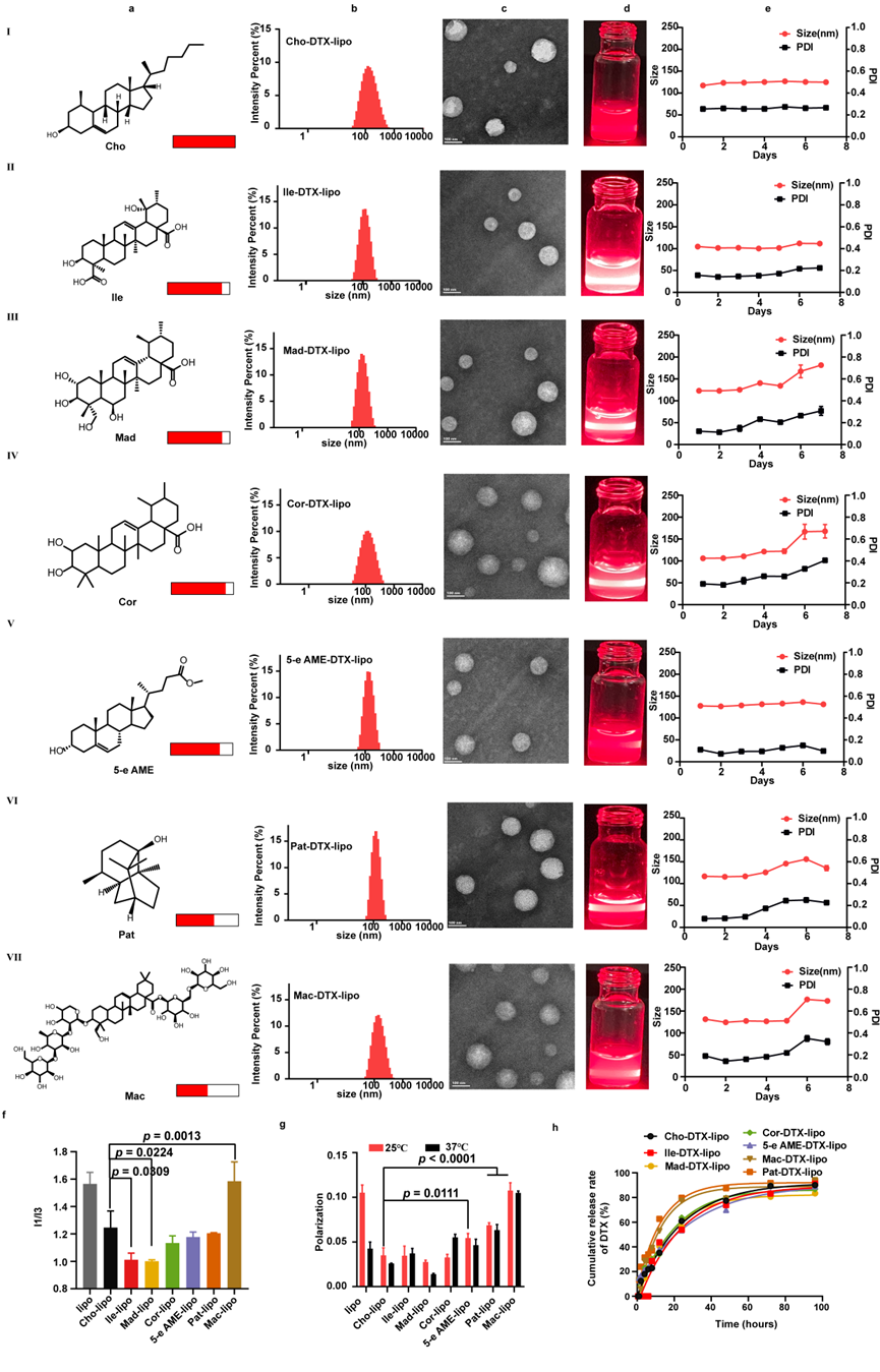 Finally, Ilexgenin A based liposomes loaded with the chemotherapy drug docetaxel (Ile-DTX-lipo) demonstrated potent antitumor activity due to their excellent tumor-targeting ability (Figure 4), making them an effective tumor-targeted drug delivery strategy.