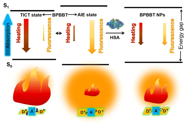 Diagram. HSA altering fluorescence and photothermal efficiency of BPBBT